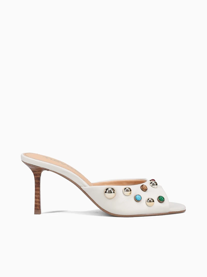 Elevate your everyday style with the Yesim heel. This sophisticated shoe features a creamy white leather upper adorned with trendy stone embellishments that catch the light beautifully. The stylish heel design offers the perfect balance of comfort and elegance, making it ideal for both casual outings and special occasions. A versatile addition to any footwear collection.