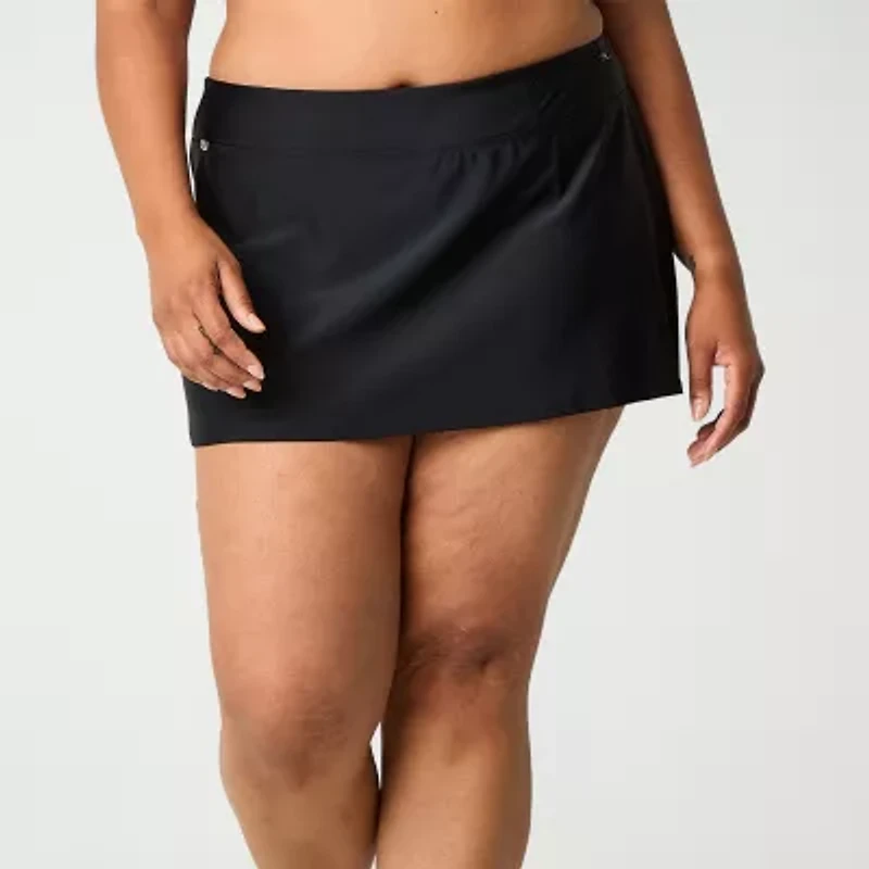 To add extra coverage to your swimming style with this ZeroXposur skirt from their women's plus collection. Made from smooth stretch-knit, this partially lined swim bottom has a comfortable elastic waistband for easy on-and-off and a side zip pocket.