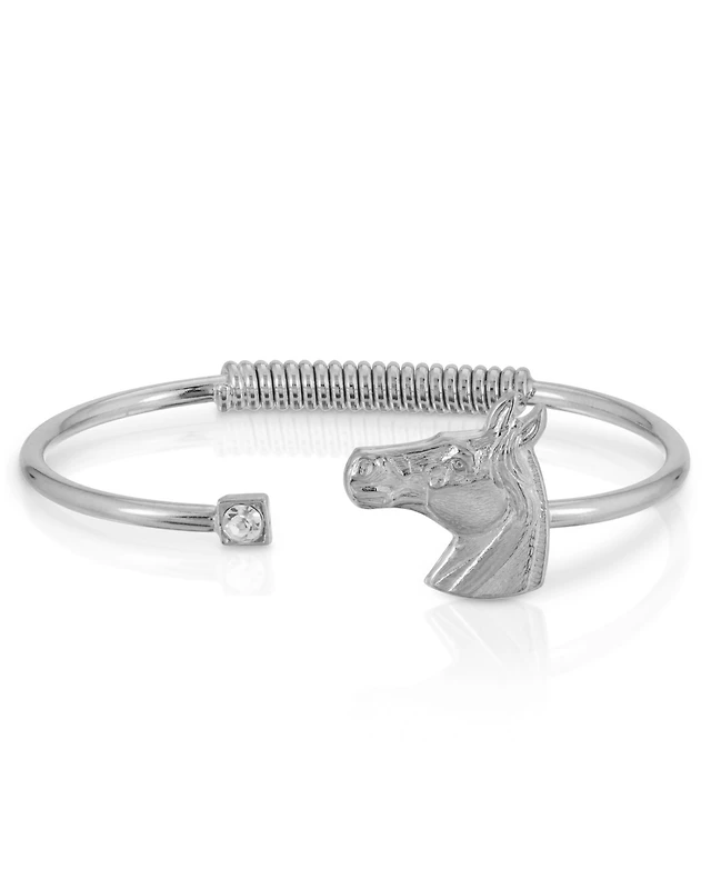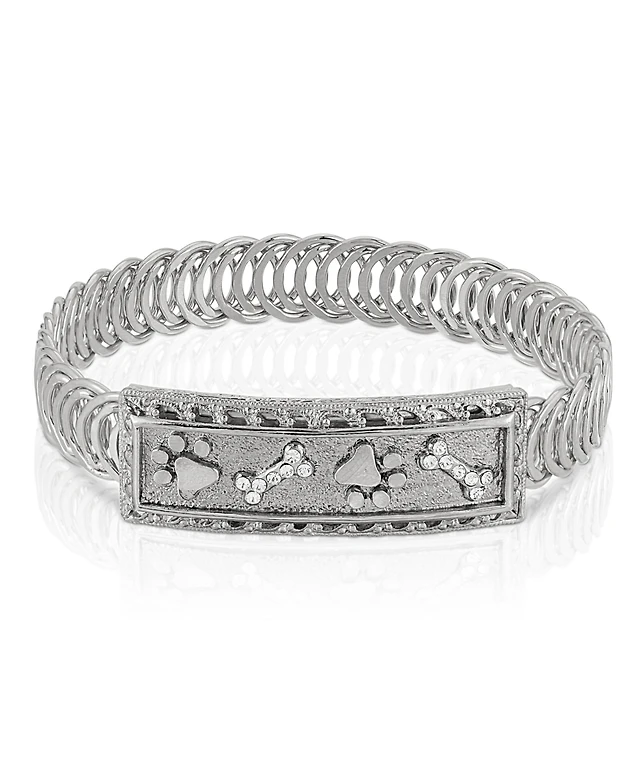 2028 Silver-Tone and Gold-Tone Stone Square Small Hinged Bracelet