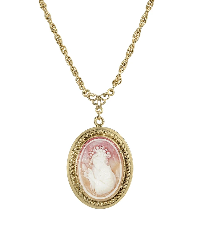 2028 Women's Gold Tone Oval Carnelian Cameo Locket Necklace