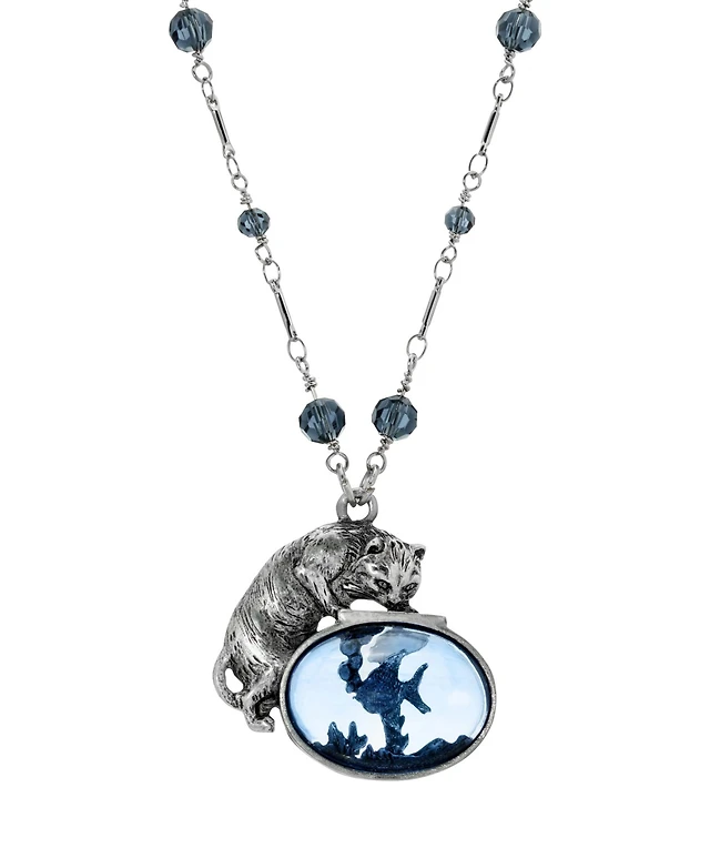 2028 Semi-Precious Stone Cat Pendant Necklace