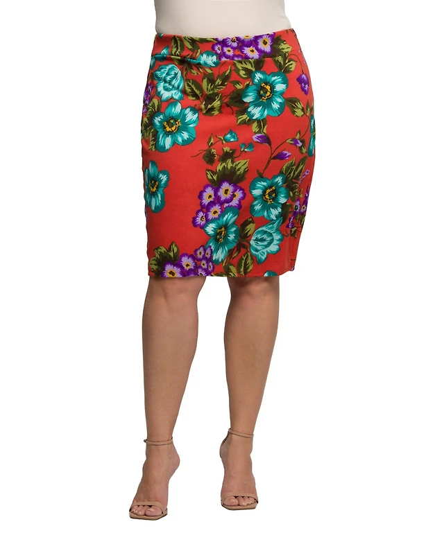 24seven Comfort Apparel Plus Floral Print Knee Length Pencil Skirt