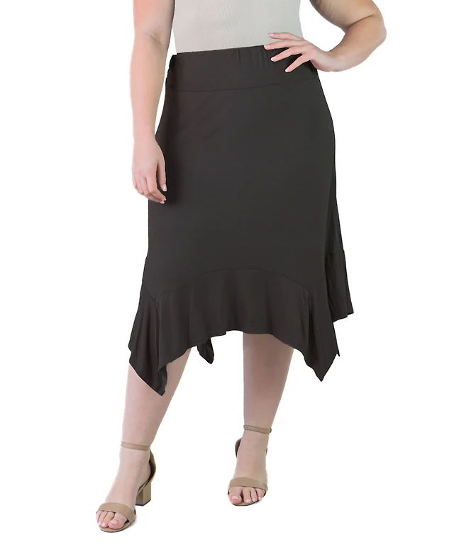24seven Comfort Apparel Plus Elastic Waist Knee Length Skirt