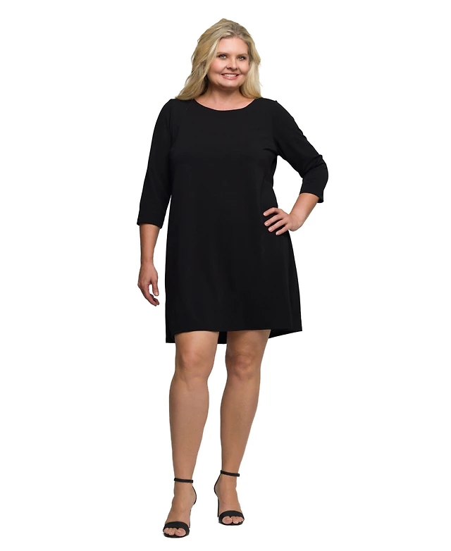 24seven Comfort Apparel Plus Three Quarter Sleeve A Line Knee Length Dress