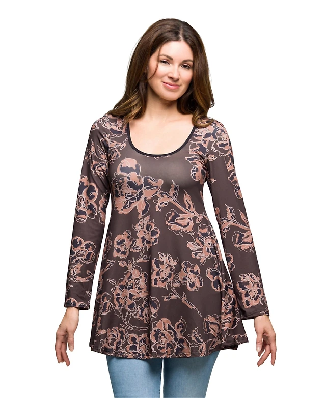 24seven Comfort Apparel Maternity Long Sleeve Midi Dress Brown Floral Print