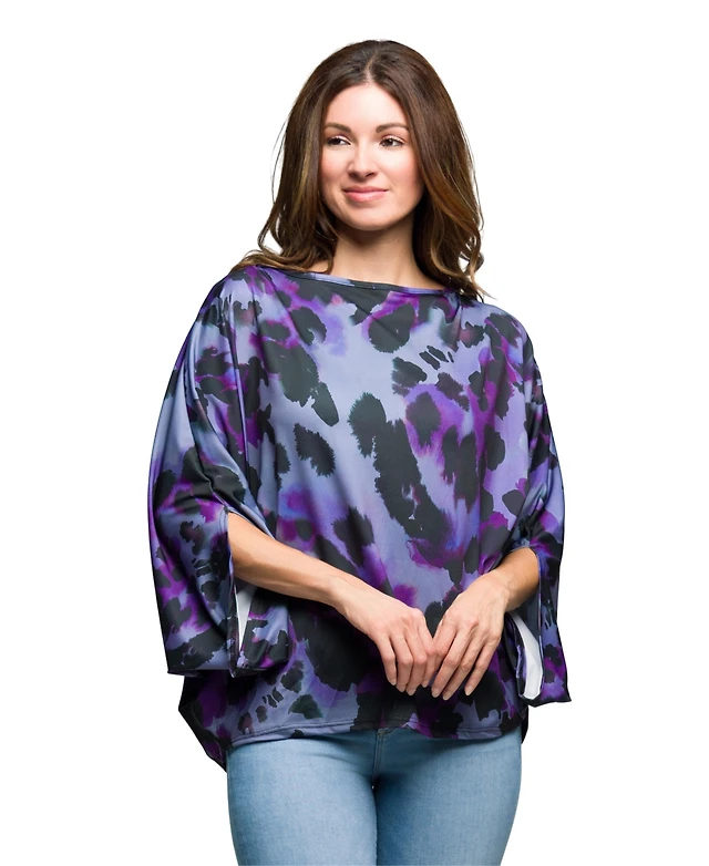 24seven Comfort Apparel Plus Animal Print Boat Neck Short Dolman Sleeve Top and Pant Set