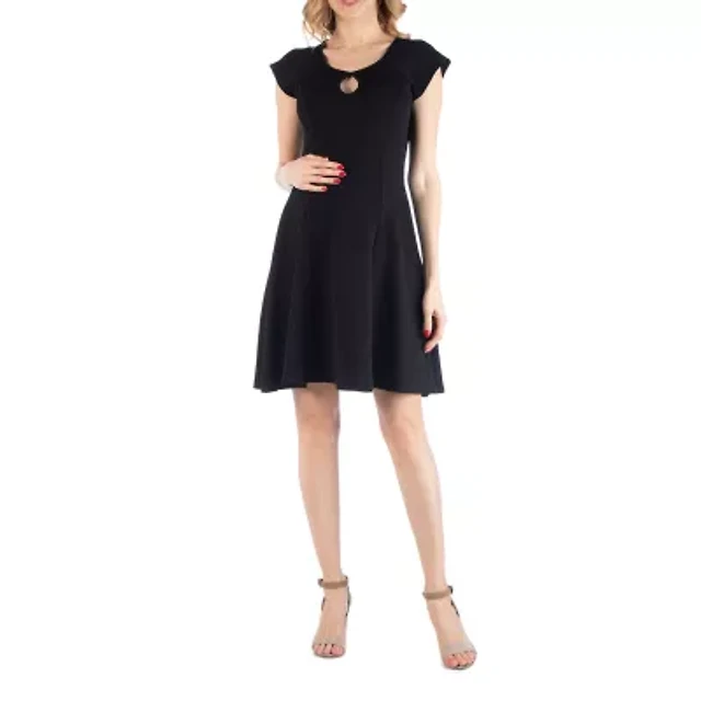24Seven Comfort Apparel Knee Length Fit N Flare Maternity Dress with Pockets