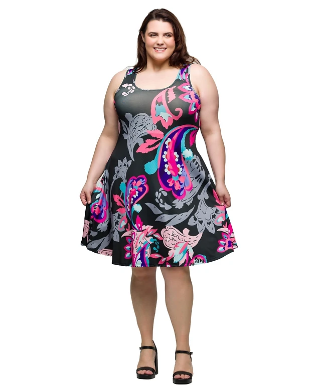 24seven Comfort Apparel Plus Rust Paisley Print Fit Flare Knee Length Dress