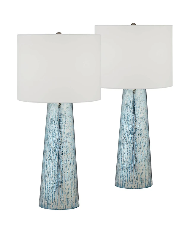 360 Lighting Carlton Modern Coastal Table Lamps 28" Tall Set of 2 Swirling Blue Faux Marble White Tapered Drum Shade for Bedroom Living Room Beds