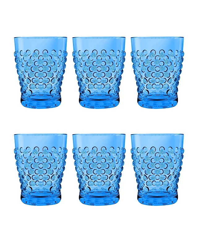 Abode Homewares Beaded Double Old Fashioned Cobalt Glasses, Set of 6