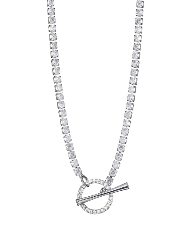 Adornia Silver Crystal Paper Clip Chain Lariat Necklace