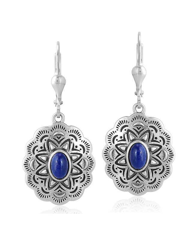 American West Jewelry Sterling Silver Lapis Flower Gemstone Bead Lever Back Earrings