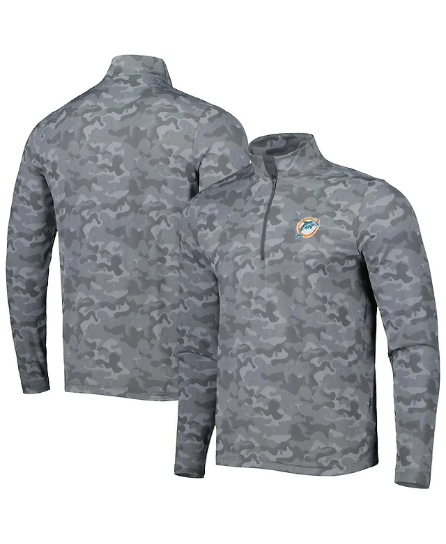 Men's Antigua Gray Miami Dolphins Brigade Throwback Quarter-Zip Top