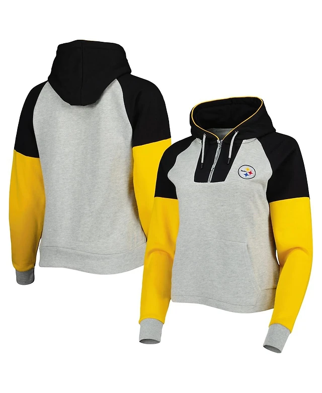 Women's Antigua Heathered Gray, Black Pittsburgh Steelers Jackpot Raglan Half-Zip Pullover Hoodie
