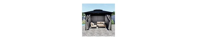 Aoodor 10 x 12 ft Wooden Frame Gazebo with Galvanized Metal Hardtop Roof, Outdoor Patio Gazebo with Charging Socket for Patio