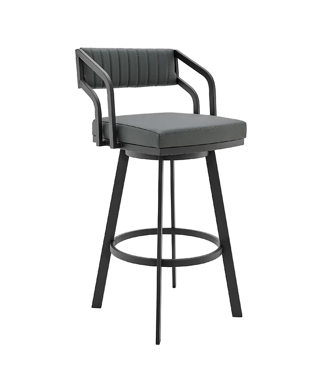 Armen Living Flynn 30" Swivel Bar Stool Silver Metal with Faux Leather