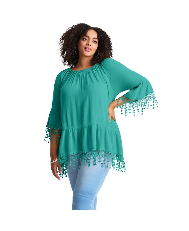 Avenue Women's Embroidered Lace Detail Peasant Blouse