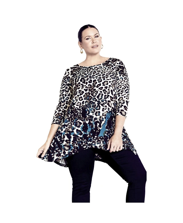 Avenue Women's Plus Printed Asymmetric Blouse