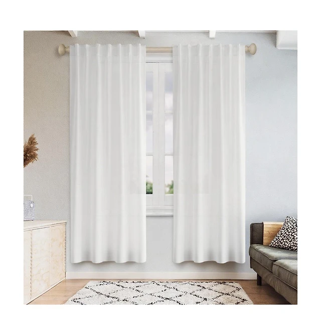Awesome Home Faux Linen Texture Light Filtering Back Tab Curtains, Semi Sheer Farmhouse Window Curtains (2 Panels), 52"x84"