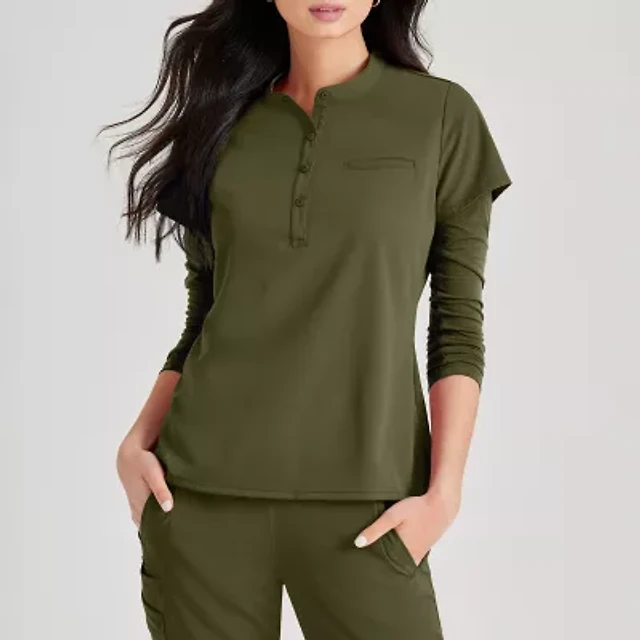 Barco Unify But163 Mission 1-Pocket Womens Plus Tall Henley Neck Short Sleeve Stretch Fabric Moisture Wicking Wrinkle Resistant Scrub Top