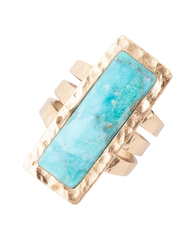 Barse Aztec Genuine Turquoise Bronze Rectangle Ring