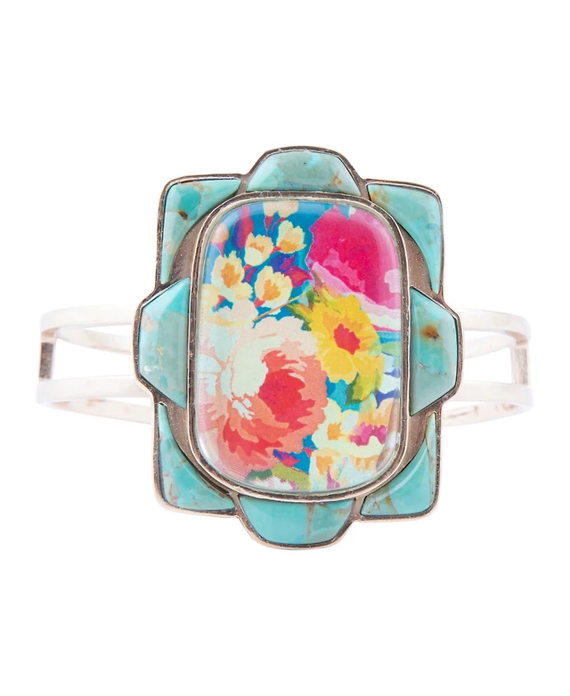 Barse Scenic Floral Blue Turquoise and Golden Cuff Bracelet