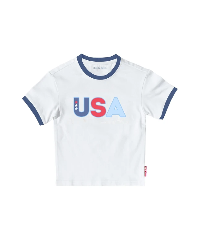 Bits & Bows Girls Usa Crewneck T-Shirt