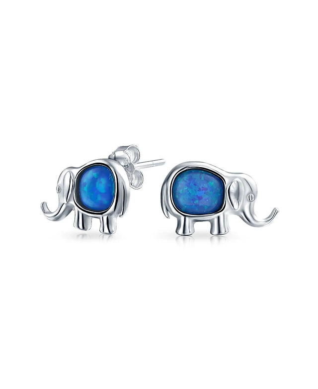 Bling Jewelry Lucky Dainty Created White Blue Opal Zoo Animal Lover Good Luck Elephant Dangle Stud Earrings .925 Sterling Silver Lever Back