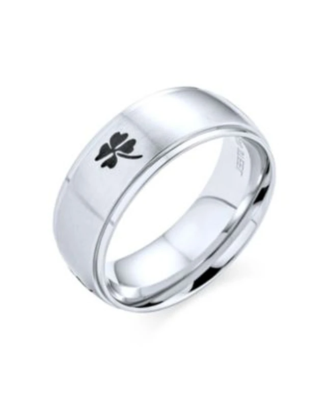 Bling Jewelry Celtic Shamrock Four Leaf Clover Band Ring Matte Silver Tone Stainless Steel