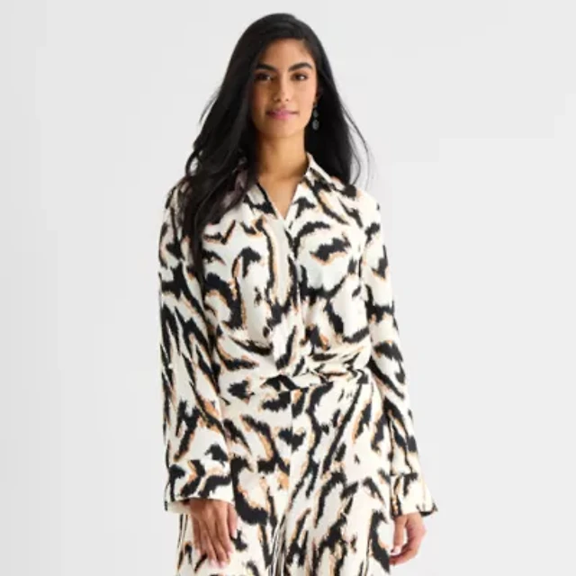 Bold Elements Womens Y Neck Long Sleeve Blouse