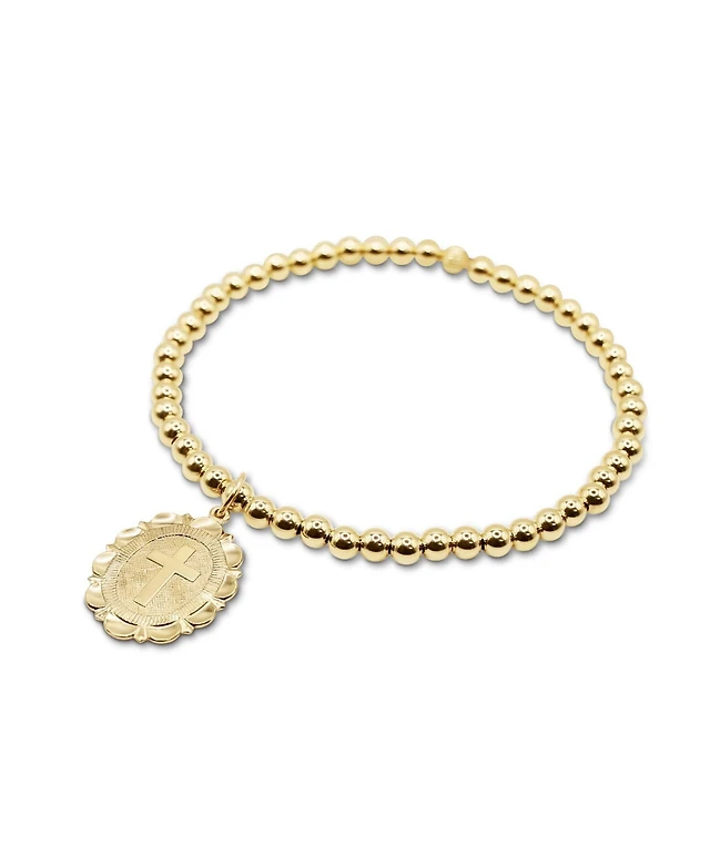 Bowood Lane Non-Tarnishing Gold Filled, 4mm Ball and Mother Of Pearl Cross Stretch Bracelet
