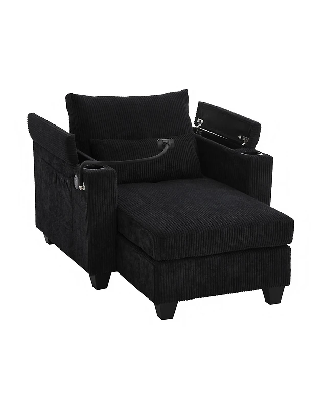 Boyel Living 72.8" Corduroy Sleeper Sofa Loveseat with Full Mattress, Two Usb Ports, Cup Holders, Side Pockets and a Phone Holder