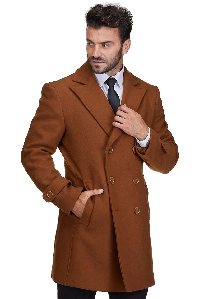Braveman Big & Tall Double-Breasted Knee Length Wool Blend Three Button Long Overcoat Top Coat