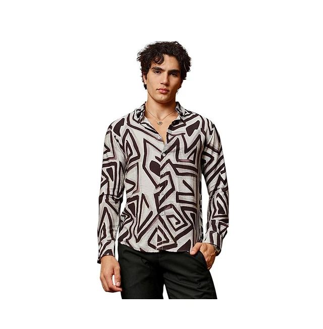 Campus Sutra Men's Beige Rayon Shirt With Abstract Mountain Print