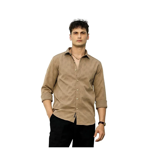Campus Sutra Men's Tan Brown Scale-Tactile Shirt