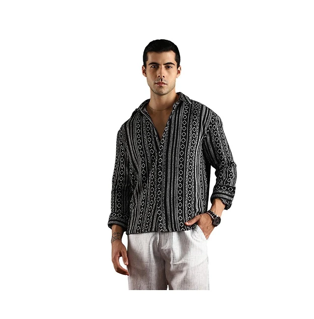Campus Sutra Men's Onyx Black Folk-Weave Shirt