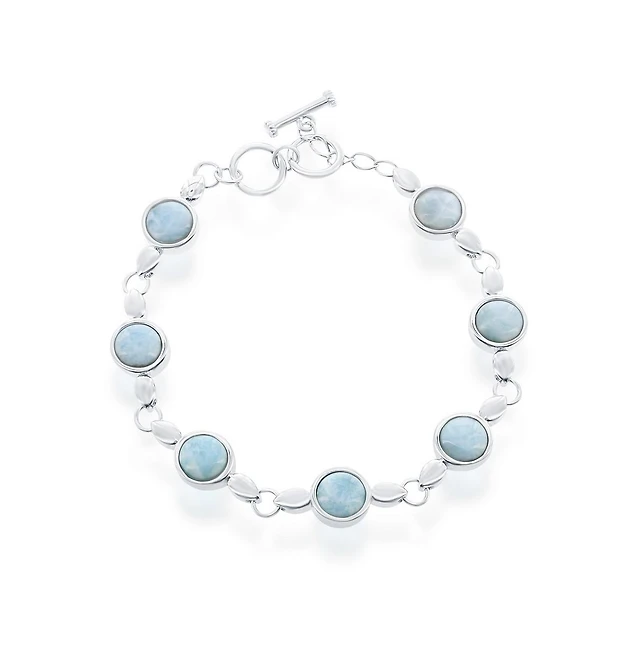Caribbean Treasures Sterling Silver, Marquise & Round Larimar Bracelet