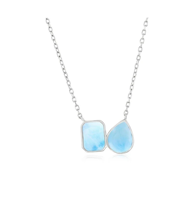 Sterling Silver Rectangle & Pearshaped Larimar Necklace