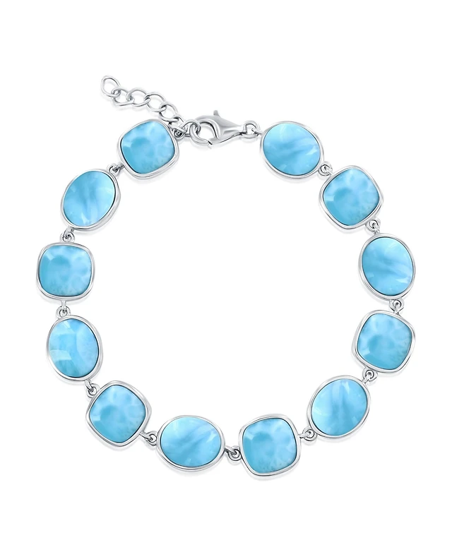 Caribbean Treasures Sterling Silver, Square & Oval Larimar Bracelet