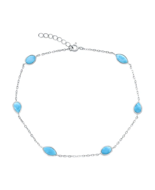 Caribbean Treasures Sterling Silver, Marquise & Round Larimar Bracelet