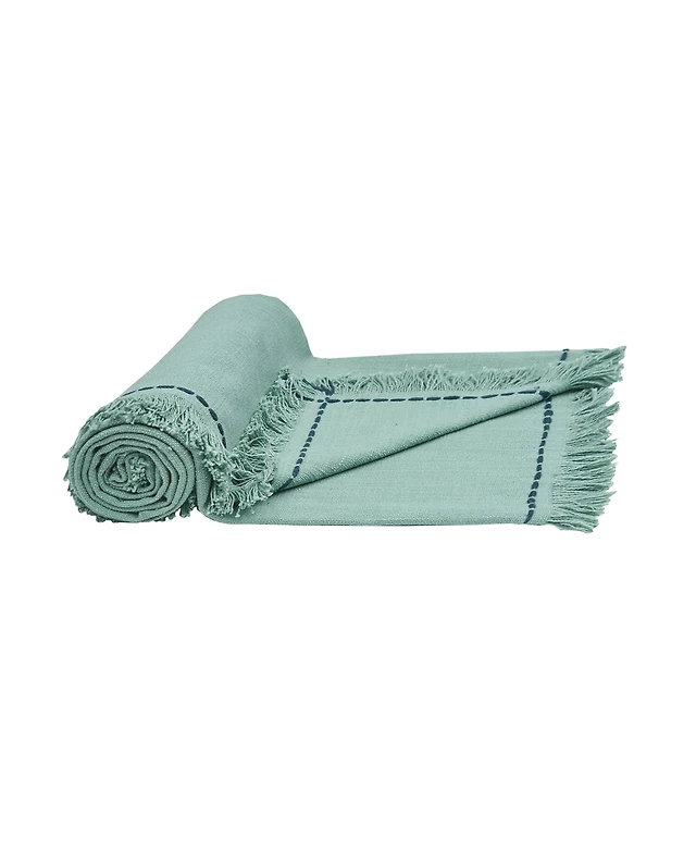 Josie Surf Pillow, 14" x 22" Green Rectangle Soft Woven Pillow For Couch Sofa Bed Chair Cotton