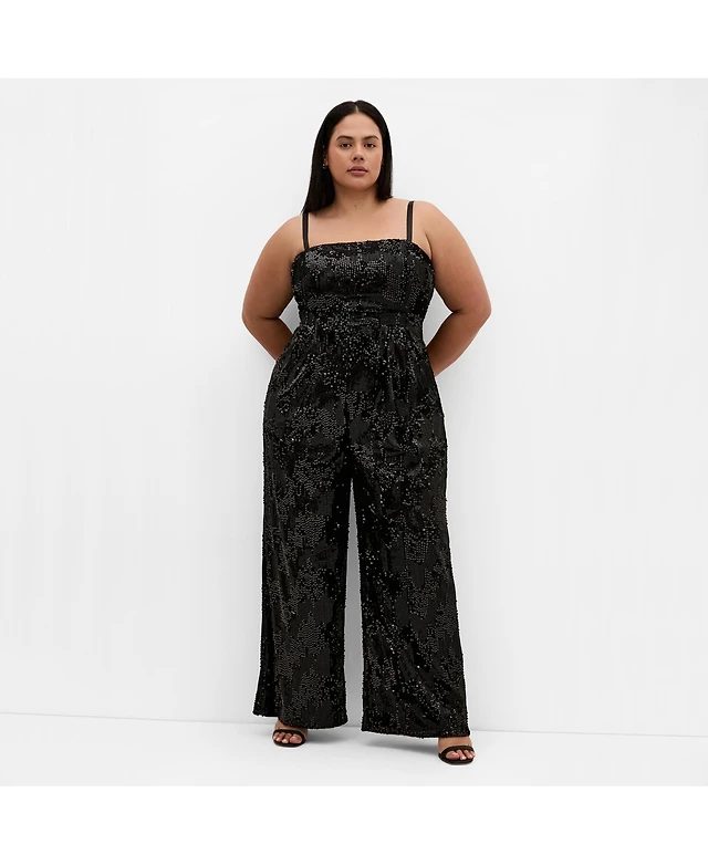 City Chic Plus Glimmer Sequin Strapless Jumpsuit