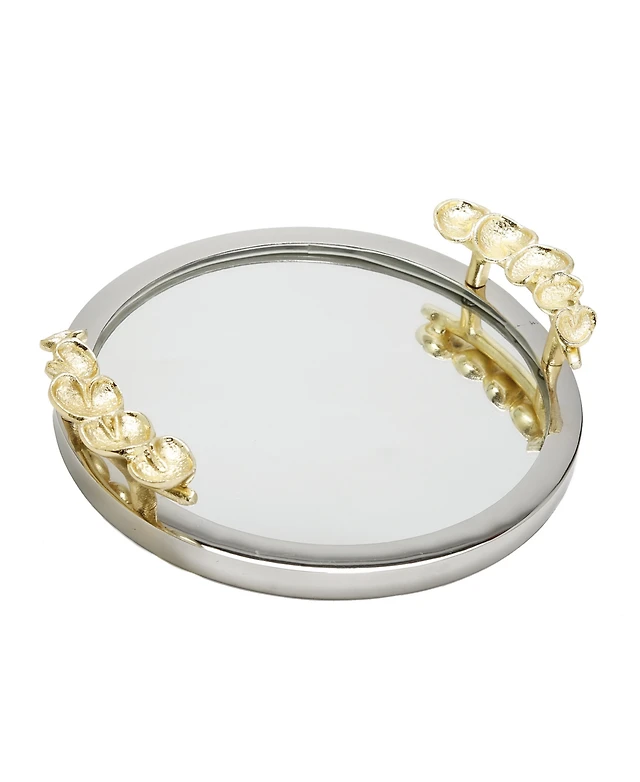 Round Mirror Tray with Design, 13.75" D