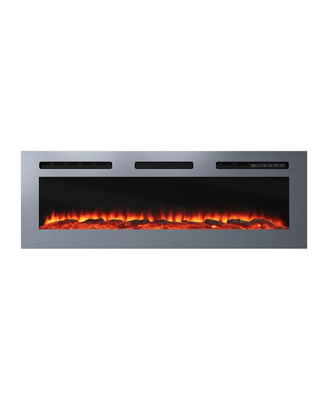 50''Stainless Steel Recessed or Wall Mount Smart Electric Fireplace