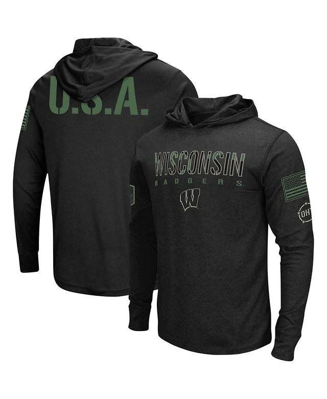 Men's Colosseum Black Wisconsin Badgers Big and Tall Oht Military-Inspired Appreciation Tango Long Sleeve Hoodie T-shirt