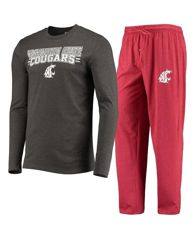 Men's Concepts Sport Crimson, Heathered Charcoal Distressed Washington State Cougars Meter Long Sleeve T-shirt and Pants Sleep Set