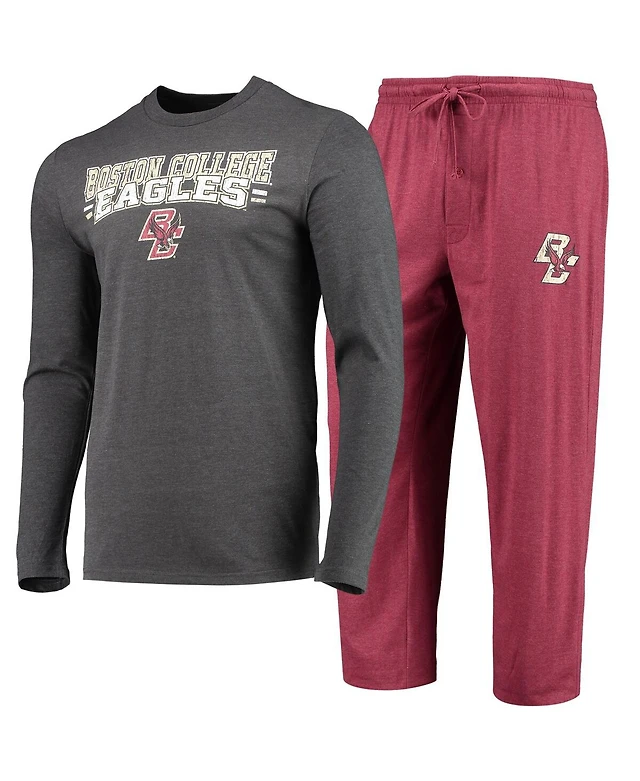 Men's Concepts Sport Maroon, Heathered Charcoal Boston College Eagles Meter Long Sleeve T-shirt and Pants Sleep Set