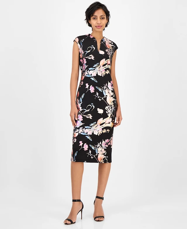 Connected Petite Floral Scuba Crepe Sheath Dress