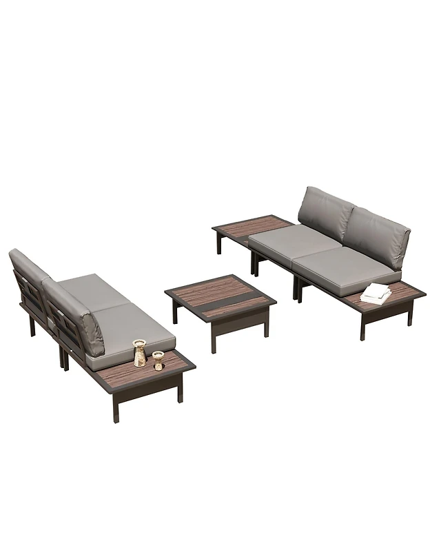 Decksplore 6 Pieces Patio Furniture Set, Outdoor Metal Frame Conversation Sets with Coffee Table