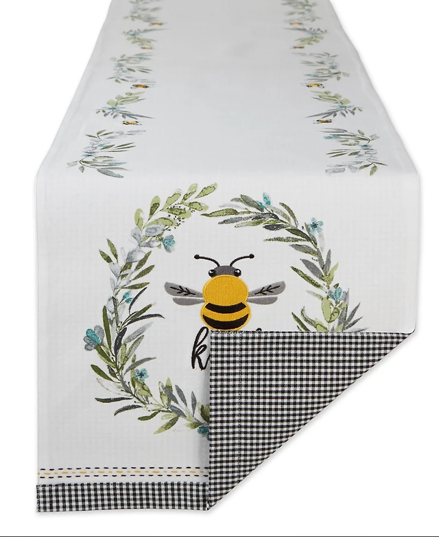 Design Imports Spring Bunny Embellished Cotton Reversible Table Runner, 14"x72"